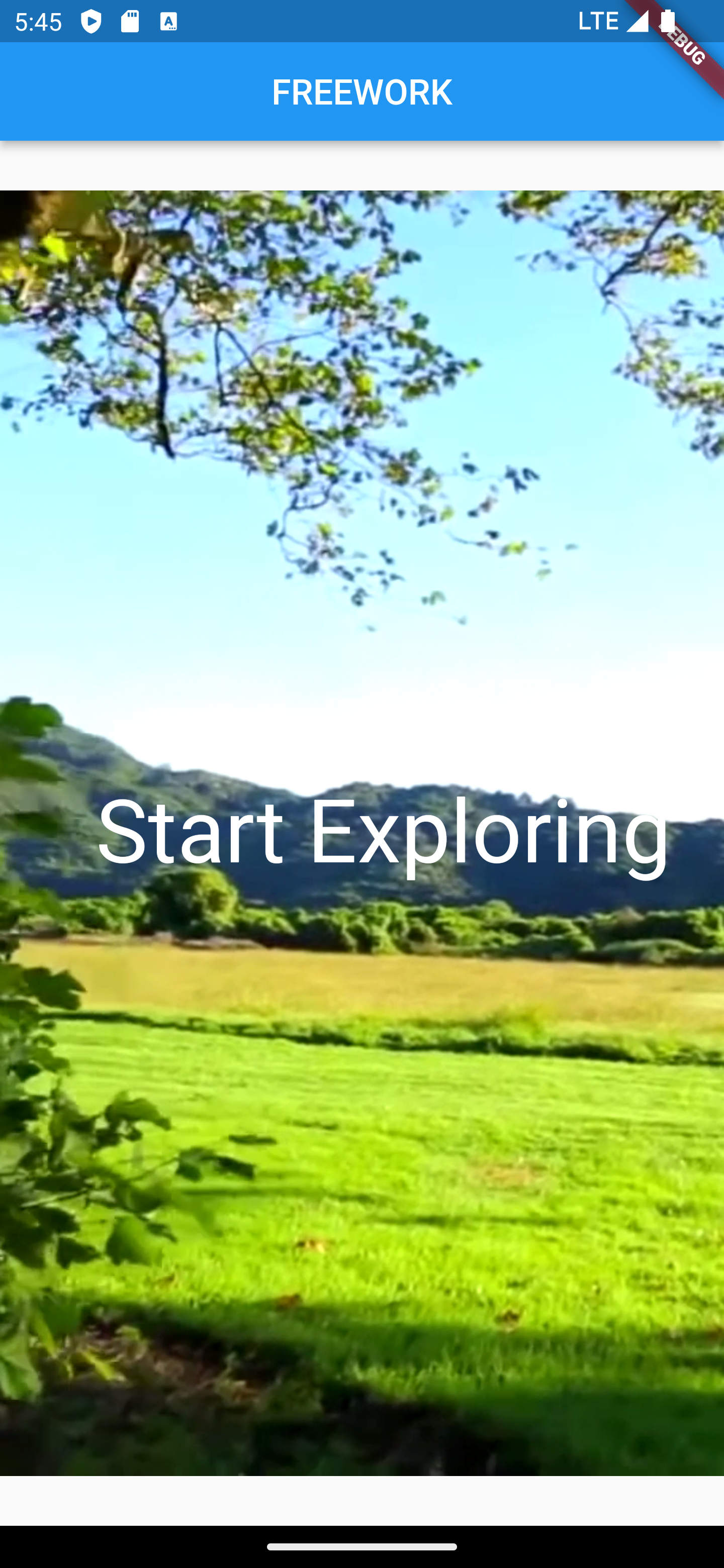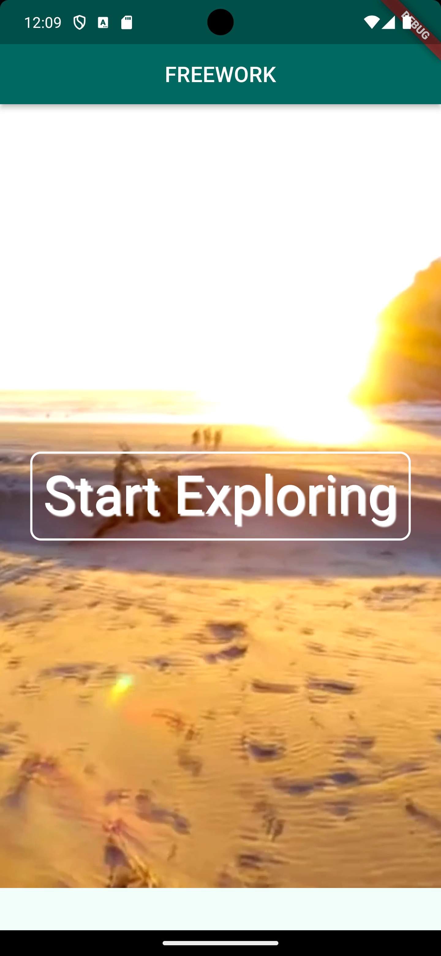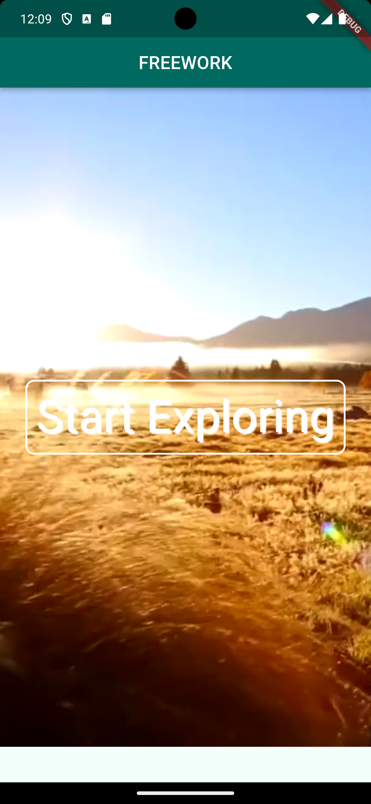 To motivate users for FREEWORK the start screen shows beautiful options outdoors by a video compared to a bleak office
