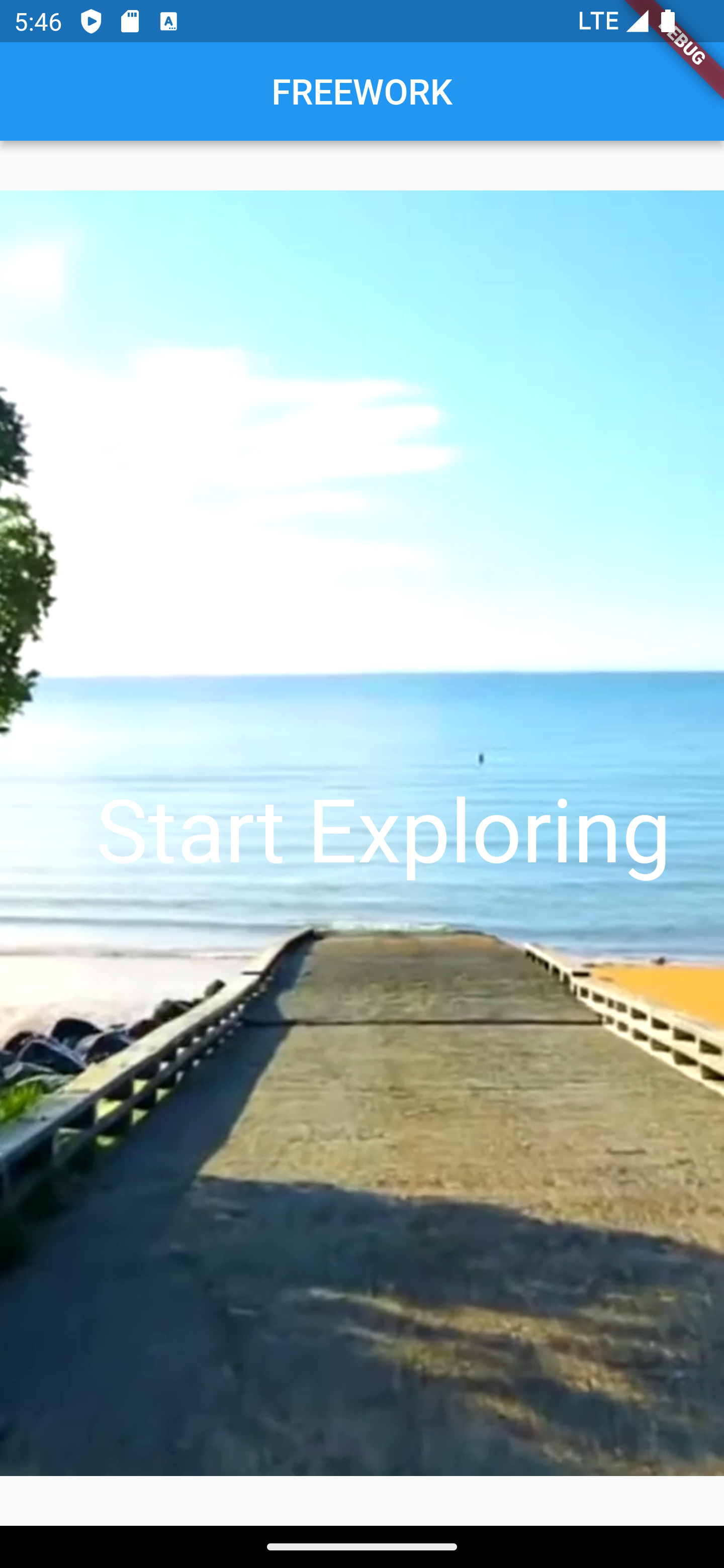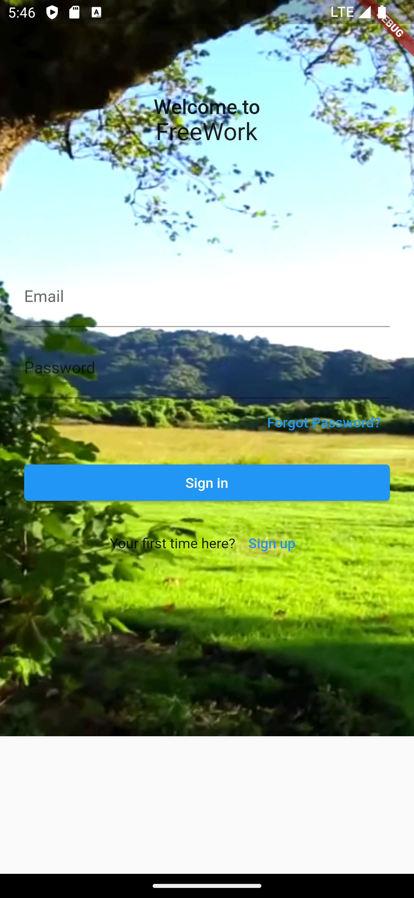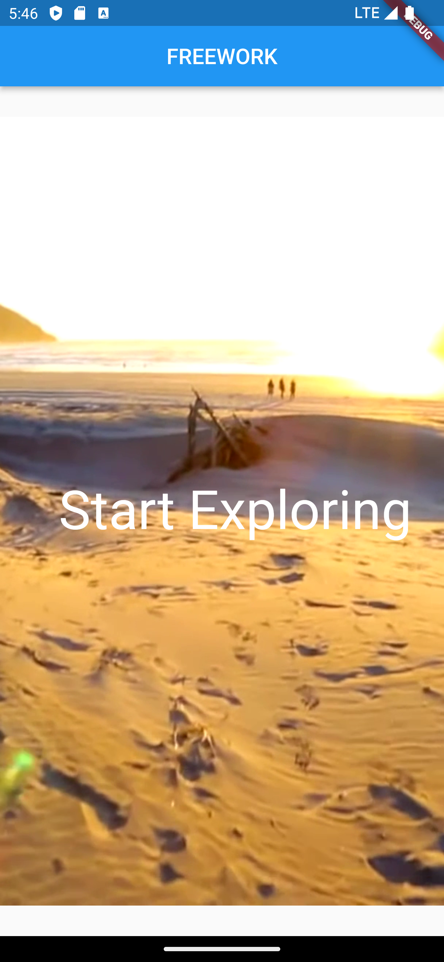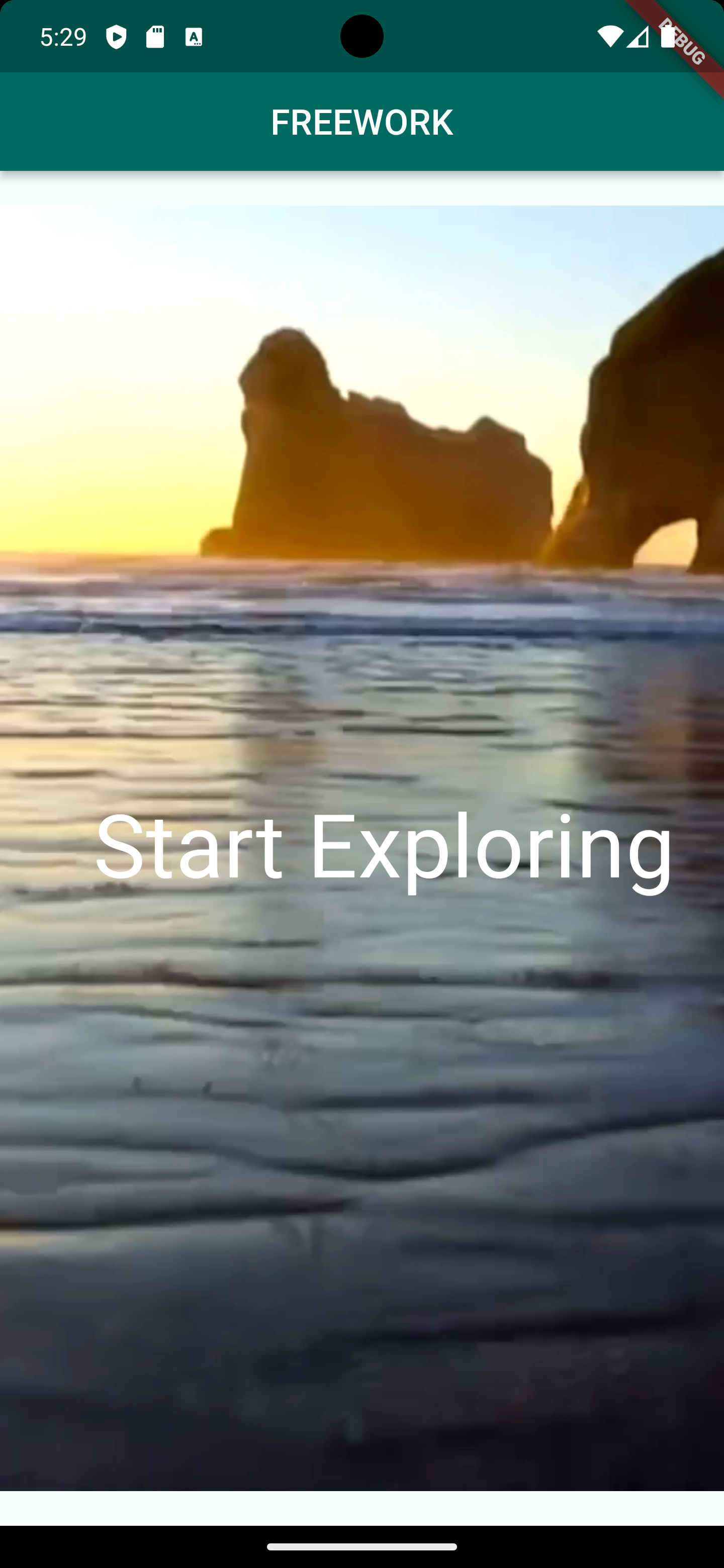 To motivate users for FREEWORK the start screen shows beautiful options outdoors by a video compared to a bleak office